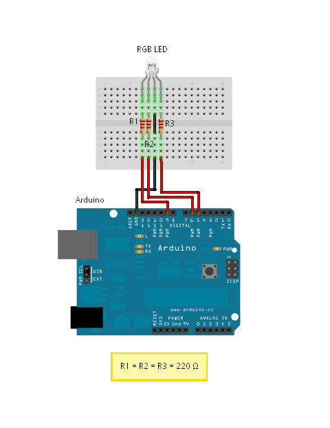 Los componentes deven conectarse de una forma determinada. S4A habilita 6 entradas analógicas (pines analógicos), 2 entradas digitales (pines digitales 2 y 3), 3 salidas analógicas (pines digitales 5, 6 y 9), 3 salidas digitales (pines 10, 11 i 13) y 4 salidas especiales para conectar servomotores de rotación contínua Parallax (pines digitales 4, 7, 8 y 12).