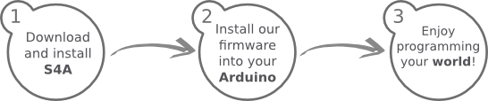 S4A es una modificación de Scratch que permite programar la plataforma de hardware libre Arduino de una forma sencilla. Proporciona bloques nuevos para tratar con sensores y actuadores connectados a una placa Arduino. También cuenta con un panel de sensores similar al de la PicoBoard.