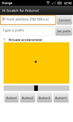 Hemos desarrollado una aplicación simple de Android que puede comunicarse con S4A via HTTP mediante el protocolo de sensores remotos de Scratch. Os lo podéis descargar desde aquí, o escaneando este código QR: